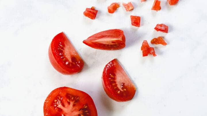 Diced refers to cutting into smaller, more uniform pieces, usually about 1/4″ squares.