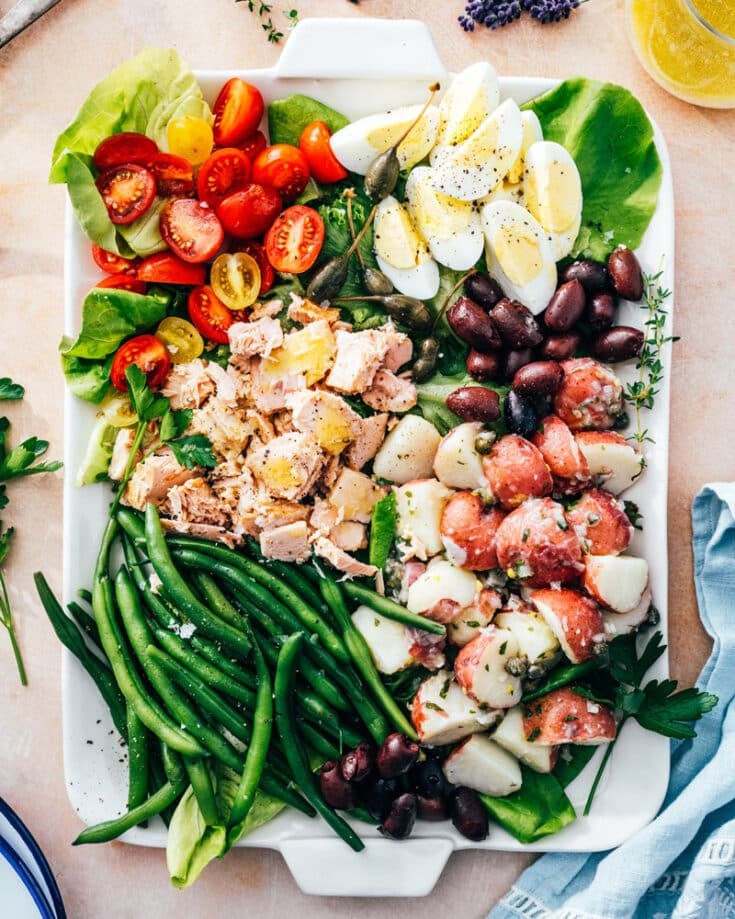The word salad doesn’t even really come close to describing the taste treat that is the traditional French Nicoise salad. Hard boiled eggs, green beans, Kalamata olives, tomatoes, tuna, and tangy potatoes sit on crunchy lettuce with a zesty lemon vinaigrette that makes you want to keep eating it for days. It’s filling enough to be a gluten free dinner, and it’s got the best carefree vibe.