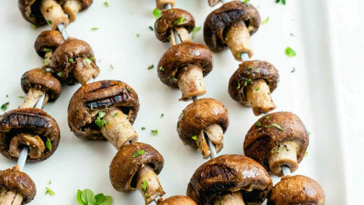 Of all of the grilled vegetables, mushrooms might be the very best. You can get big flavor with no marinating time: just toss them with olive oil, lemon juice and herbs. Throw them on skewers and grill until tender.