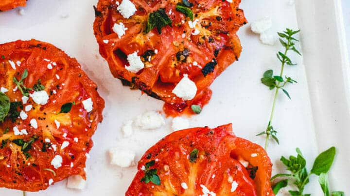 Take one bite and it’s true magic: smoky, pure sweet tomato, with a melt-in-your-mouth quality that makes you immediately want to shout how delicious they are. Drizzle with olive oil and top with fresh herbs, and it’s the very best summer treat you could imagine.