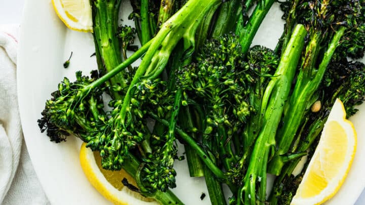 Here’s a vegetable side dish that always impresses: Grilled Broccolini! Broccoli’s younger, hipper cousin has elegant long stems and a sweet flavor that’s a unique alternative to the standard. Grill it up until it’s tender and charred, then spritz with lemon.