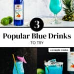 Blue curacao is a sapphire-tinted orange liqueur made in the Caribbean. It has a bright citrusy flavor and a color that makes drinks look like swimming pool water. I’ve tested dozens of blue drink recipes over the years and here are my top ideas, in order of popularity! From the classic Blue Hawaii to more unique drinks, I hope you’ll find something you love.