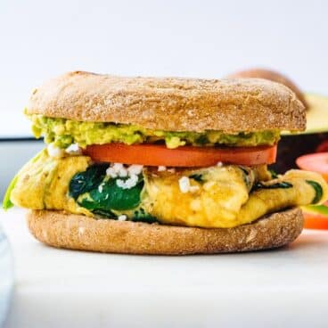 This healthy breakfast sandwich is an easy way to start the day with veggies and protein! The spinach feta filling is hearty and satisfying.