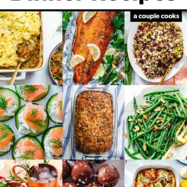 Here's a favorite Christmas dinner idea: Butternut Squash Lasagna with Sage! The flavors are impeccable: creamy ricotta, punchy Pecorino, and fresh sage envelop the sweet squash in a cozy embrace. (Vegetarian; gluten-free with gluten-free noodles)