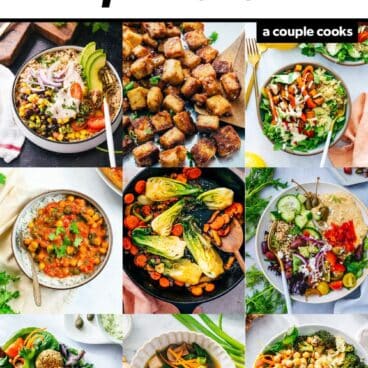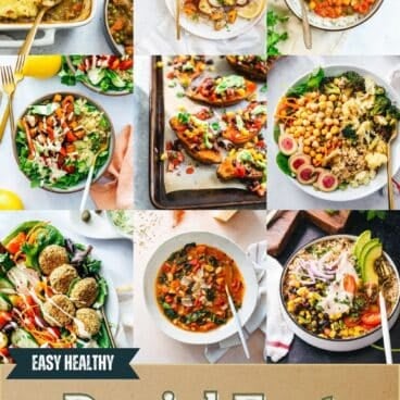 Need a healthy dinner idea? Look no further than this trusty trick: Stuffed Sweet Potatoes! Bake the spuds whole until they’re moist and tender, then top with savory fillings to make a hearty dinner recipe. The way the savory black beans contrast with the sweet orange flesh makes magic, in our opinion. (Omit the feta cheese; use Cashew Cream if desired.)