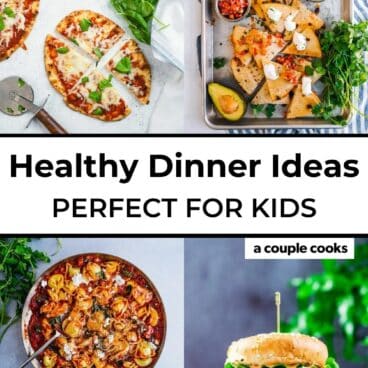 Here are our top healthy dinner ideas for kids! Each recipe in this list has been tested on real kids (our son and daughter!) who have given their stamp of approval. Whether you’re looking for healthy recipes or just something fast and easy to get on the table, we’ve got something for everyone in this list. Ready to get started?