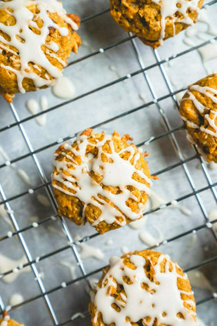 These easy pumpkin oatmeal cookies taste basically like oatmeal cream pies! They’re made with nutrient dense rolled oats and the traditional pumpkin spices: cinnamon, ginger, and nutmeg. The icing on the cake: they're topped 1-minute powdered sugar icing for a lacy look. See if you can resist and eat just one!
