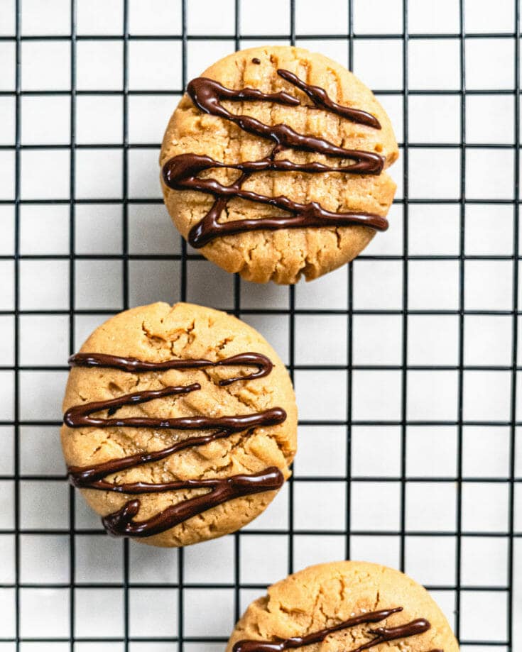 What’s your ultimate easy cookie? These vegan peanut butter cookies are where it’s at for us! They’re soft but perfectly crumbly, and salty sweet. Decorated with the classic criss-cross pattern, they’ve got a sparkle of sugar. And a chocolate icing drizzle makes them look even more fun.