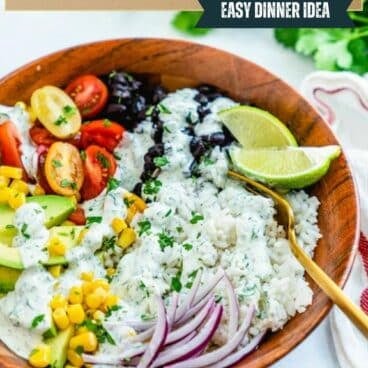 This rice bowl is covered in a creamy, zingy cilantro lime ranch that takes it over the top! You’ll love this tasty sauce: but we’ve got lots of other options too. If you’re looking for a vegan variation, review the list below: