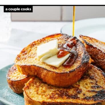 Bread to avoid for French toast? We don’t love purchased white or whole wheat sandwich bread. Sure, it’s classic: but the texture can come out mushy and bland. Of course, you can use it if it’s all you have. But for the best French toast recipe, stick to the types above.