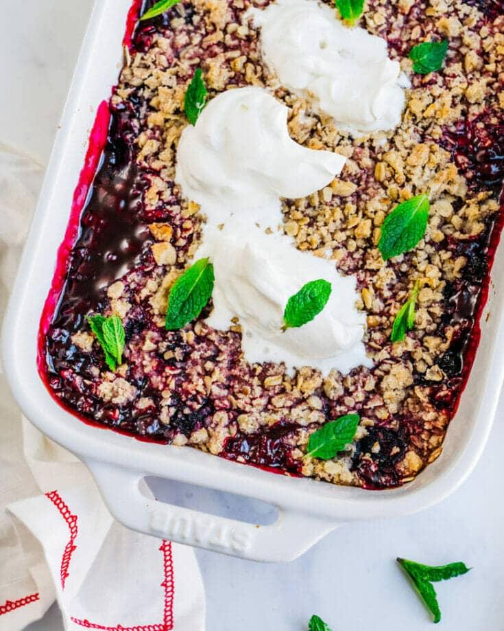 Looking for fruit desserts to wow your friends? This easy fruit crumble can be made with any fruit you like! It’s simple to make, it’s got a healthy spin, and it tastes SO, so good. The filling is like eating pure blueberry (or whatever fruit you choose!). It's truly a stunning recipe you'll make again and again!