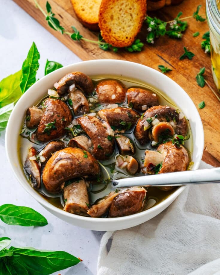 Here’s an easy Italian-style appetizer that will wow everyone with minimal effort: Marinated Mushrooms! You know those seasoned mushrooms you find at an Italian deli counter or antipasti bar at the grocery? They’re easy to make at home and full of bold, zesty flavor. Add them to a cheese board or antipasti platter, and everyone will be singing their praises.