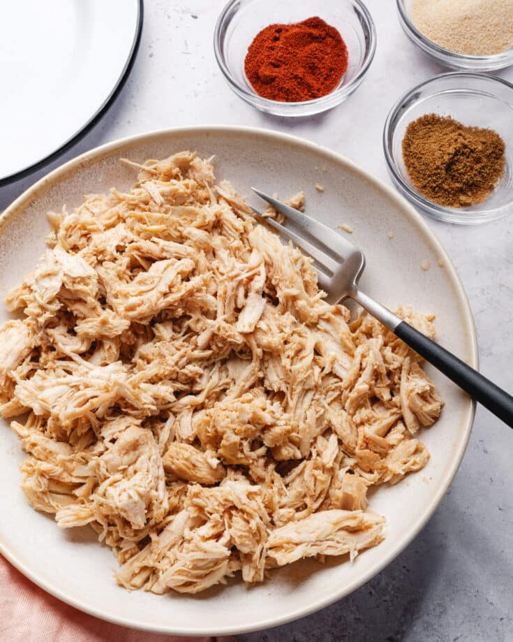 This Instant Pot shredded chicken is a weeknight dinner lifesaver! This simple method makes juicy, flavorful chicken that’s perfect for meal prep or adding to recipes. We love it for topping tacos (with corn or grain free tortillas), burrito bowls, nachos, salads, and more.