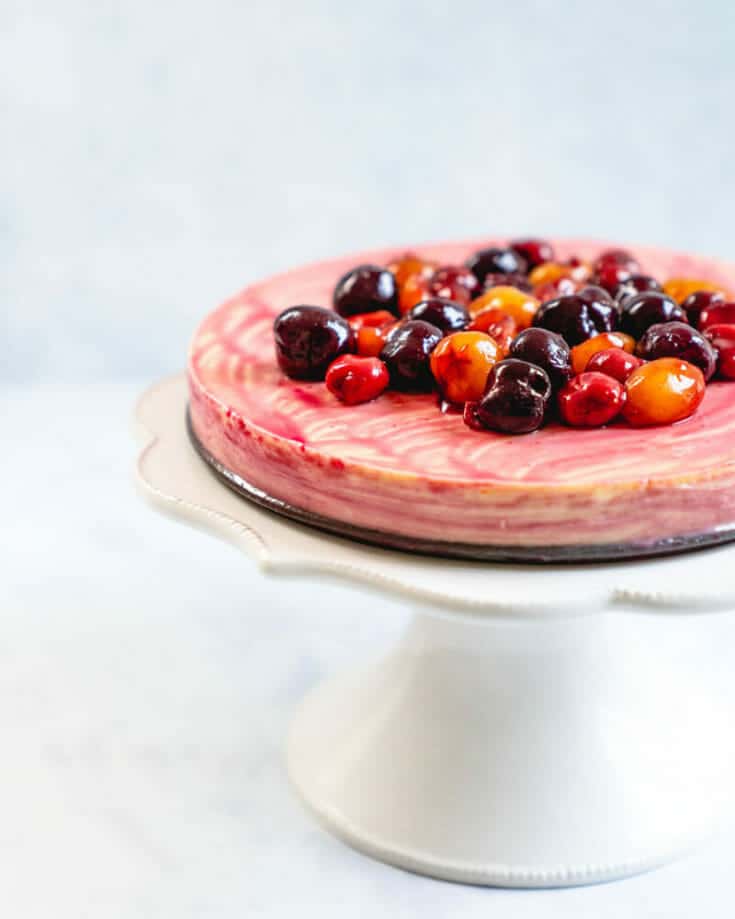 This cherry cheesecake has massive flavor as a deliciously creamy gluten free dessert! Here Greek yogurt helps add creaminess instead of the traditional cream or condensed milk. The icing on the cake, so to speak? It’s crustless! A crustless cheesecake also means fewer calories — you don’t even miss it because the filling is that creamy! It’s one of our favorite gluten free desserts.