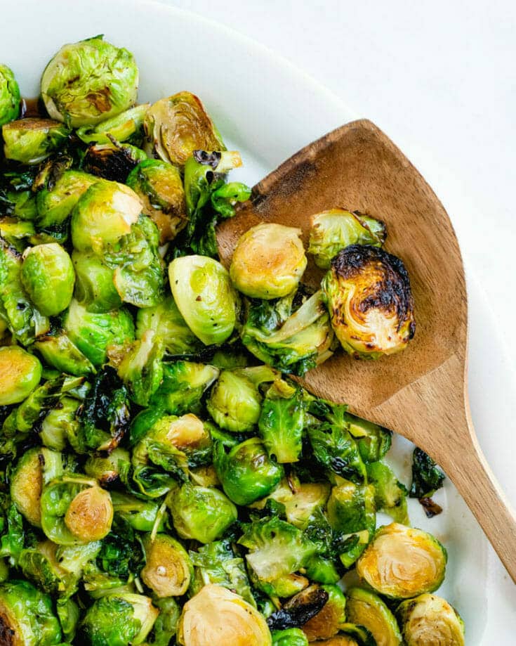 Try these grilled Brussels sprouts! The grill makes them blackened and smoky; toss with balsamic sauce and they’re perfection.