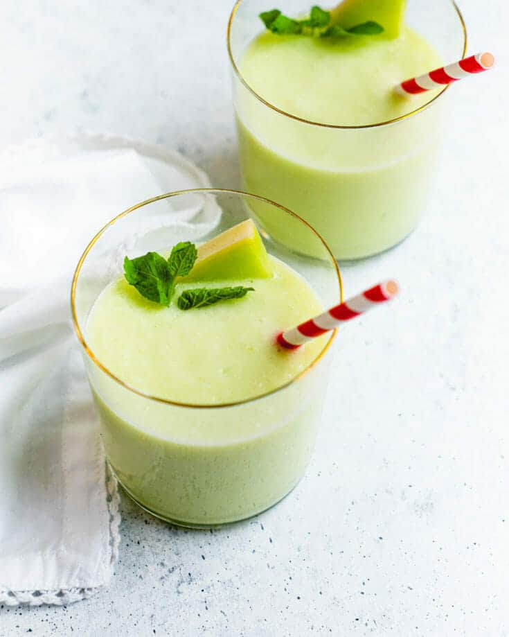 Honeydew melon is an uncommon ingredient when it comes to smoothies, but this recipe will make you an instant fan. It has a beautiful delicately sweet flavor and a frothy texture. It’s hydrating and healthy: and the melon flavor really does shine with honey and vanilla!
