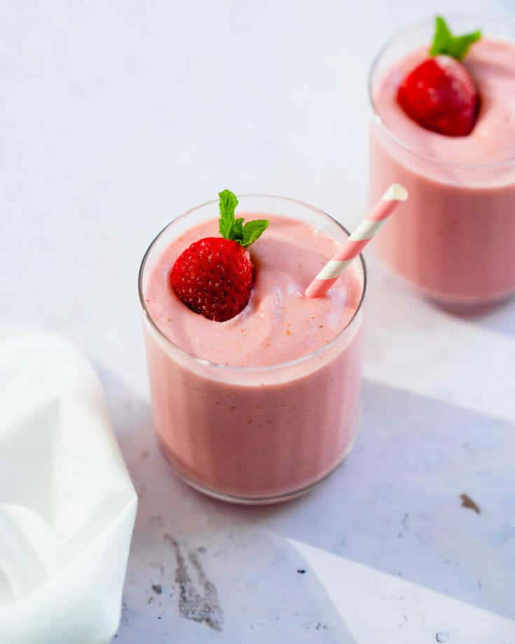 Here’s the most perfect strawberry smoothie you’ll find! It’s easy to blend up and has the best creamy texture and fruity flavor.