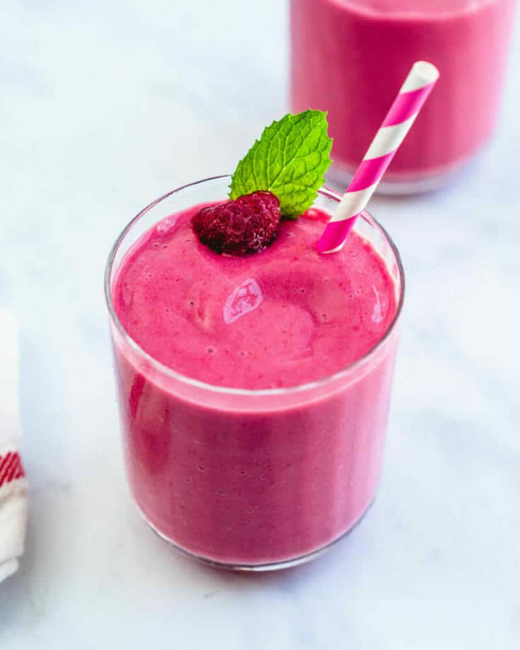 This raspberry smoothie has it all: the best sweet tart flavor, creamy frosty texture, and stunning brilliant color. It’s one of the most refreshing smoothies you’ll find.