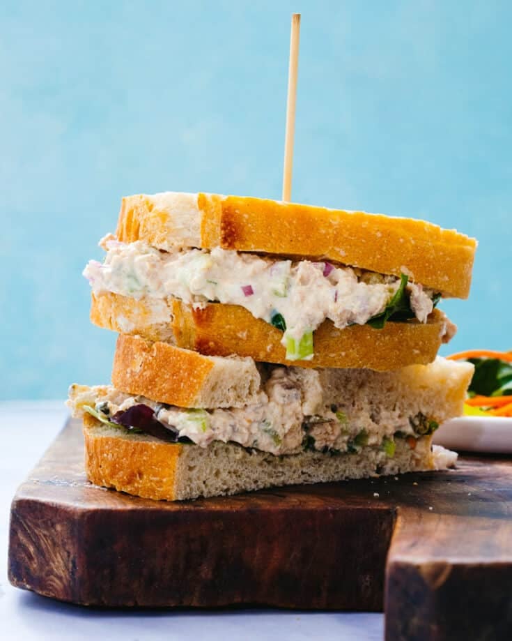 A salmon salad sandwich is a quick and easy lunch idea! Creamy and savory, it’s a tasty spin on the classic tuna.