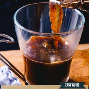 - Strain out the grounds: I recommend using a strainer to strain the coffee into a mug. If you don’t have a strainer, dribble a bit of cold water across the top of the hot coffee, which makes the grounds sink to the bottom.