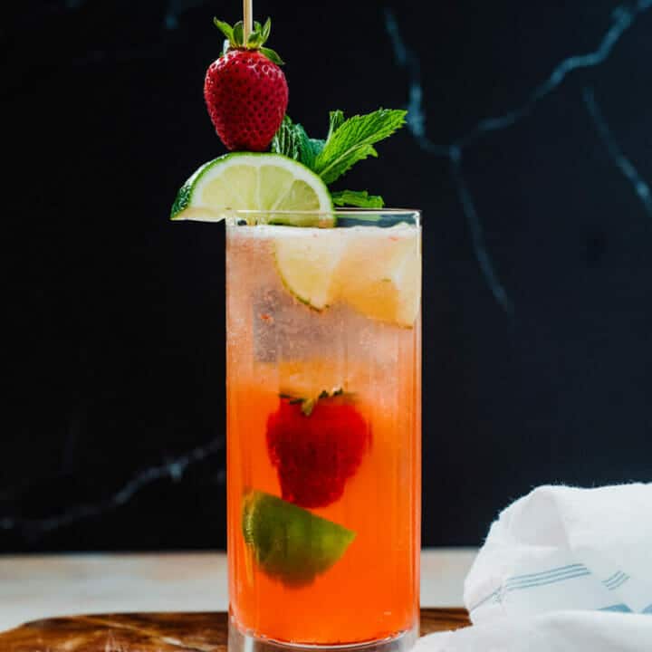 The sweet tart flavor of ripe fresh strawberries only improves this classic! Muddle some fresh berries right into the cocktail.