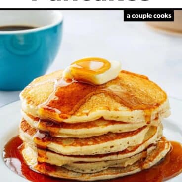 Need a cozy weekend breakfast? Try this easy pancake recipe! This one is basic and classic, using a handful of ingredients lurking in your pantry and fridge. Pour the thick batter onto a sizzling griddle, and it fries up into golden, fluffy cakes with an irresistibly robust flavor. Sure, you can reach for oatmeal pancakes or banana pancakes, but if you’re in the mood for classic flavors and basic ingredients: this recipe is it!