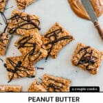 Here’s our new favorite trick for healthy treats: Peanut Butter Oatmeal Bars! These are everything you want in a treat: irresistible sweet peanut-y flavor, chewy texture, and a little drizzle of chocolate on top! These no bake oatmeal bars are like our famous bliss bite cookies, but easier and healthier (if that’s possible). And we can’t get enough of them! Our son Larson often asks with a sly smile if he can have an oatmeal bar: and we’re happy to indulge him. This sweet treat optimizes whole grain oats while hitting it big in the sweet, salty and satisfying department. Let’s get cooking! Though really…there’s no real cooking involved.
