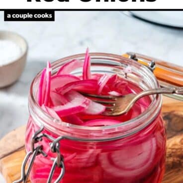 Variation: Sub half the red onions with sliced English cucumber for pickled cucumbers and onions!