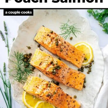 Need a quick way to cook salmon? Try Poached Salmon! This method might not be the most popular, but it’s incredibly fast and easy: just 15 minutes start to finish. It results in perfectly tender, mild fish that melts in your mouth. Season it up and poached salmon is irresistible; try it with a creamy sauce or flaked into a salmon Caesar salad. After the first bite, we were sold! Here’s how to poach salmon.
