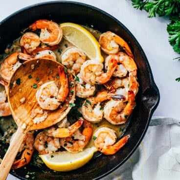 - Garlic butter shrimp: Lemony garlic butter with minced garlic makes for an flavor-packed dish. If you love garlic as much as I do, feel free to use even more fresh garlic cloves.