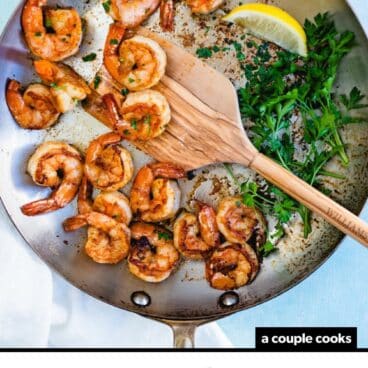 Shrimp on the stove is a regular feature in my meal planning. You’ll want an aluminum, copper, or cast-iron pan for the best sear and caramelization on your shrimp. Non-stick works, too, but you’ll have less browning. (They’ll still be delicious!)