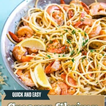 This shrimp pasta recipe is easy to make with the best big flavors: garlic, lemon, and Parmesan. It’s a home run dinner idea that’s always a hit!