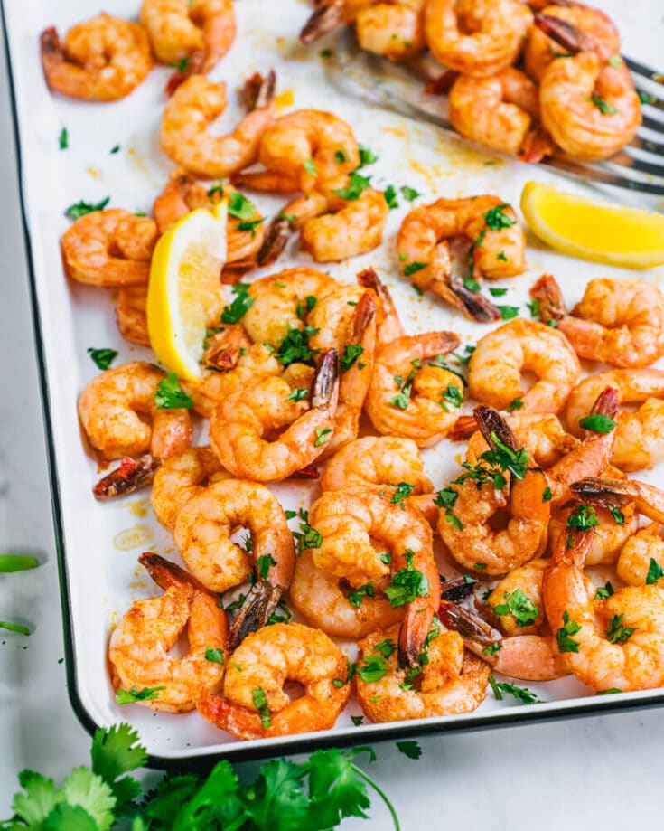 Shrimp is a big winner around here: it’s delicious, a healthy lean protein, and so fast to cook. Instead of sautéing it, why not try baked shrimp in the oven? This method is so easy and the shrimp come out juicy and perfectly seasoned with garlic and herbs. Move over, all other shrimp recipes! This one is the perfect healthy, fast and easy dinner.