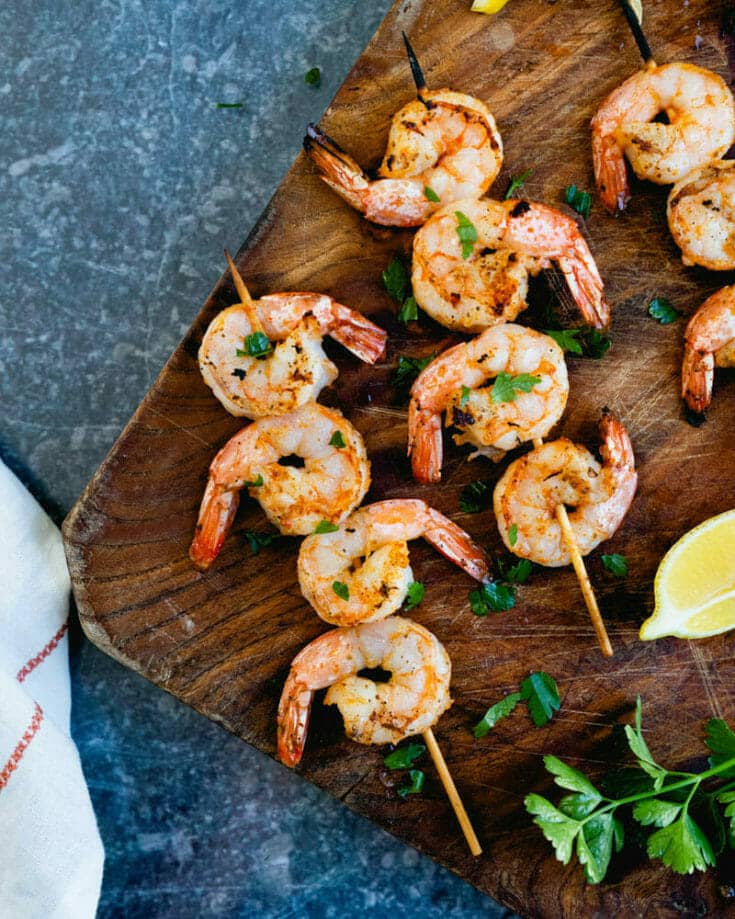 Next in our shrimp recipes: is there anything more delicious than succulent, garlicky shrimp right off the grill? Here’s a seriously easy recipe for grilled shrimp, using a zesty lemon and savory garlic. It takes only 2 to 4 minutes to cook! There’s really nothing faster on the grill, and it makes for a simple, healthy shrimp recipe.