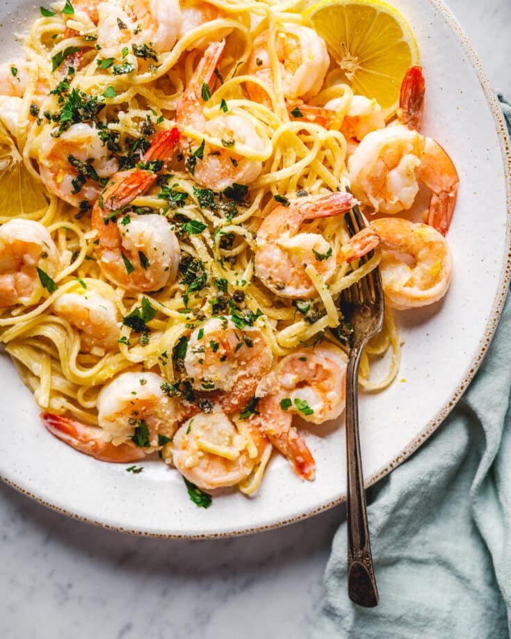 Need an easy dinner that tastes restaurant quality? Try this luscious shrimp linguine, a wow-worthy dinner ready in 30 minutes! This is one of our favorite ways to serve shrimp, and if you’re a shrimp lover like we are, it’s a must try. Plump, succulent shrimp are bathed in a vibrant lemon butter sauce that perfectly complements the al dente linguine.