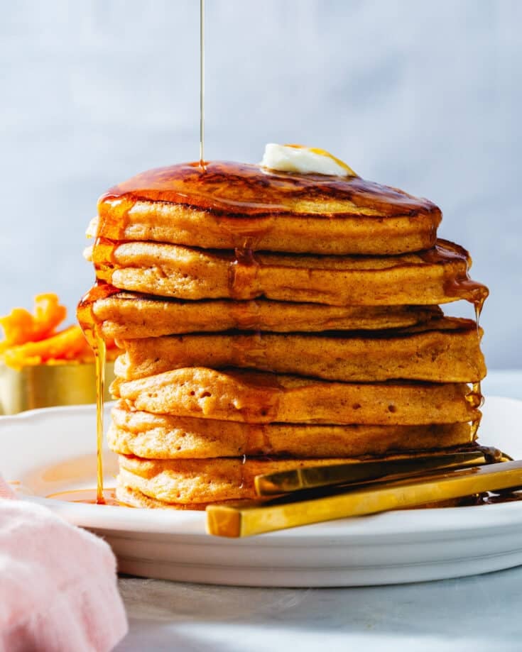 These sweet potato pancakes are so fluffy, moist and cinnamon-scented, they immediately moved to the top of our favorites list. They turn into the most delicious, fluffy breakfast treat: incredibly moist and packed with cozy flavors. Get ready to fall in love with this easy and satisfying breakfast idea!