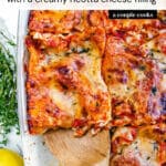This vegetarian lasagna recipe is a total crowd pleaser! The easy spinach and ricotta cheese filling is classic and creamy.