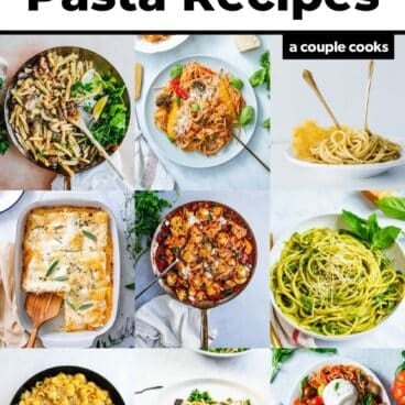 As two cookbook authors and bloggers for over a decade, we decided to make a master list: here are our favorite vegetarian pasta recipes that have been a hit in our house! (That’s right, cooked and eaten by 4 actual humans.) Whether it’s roasted vegetable pasta or a sophisticated Italian cacio e pepe, each one has a special place in our hearts. We hope they will for you too!