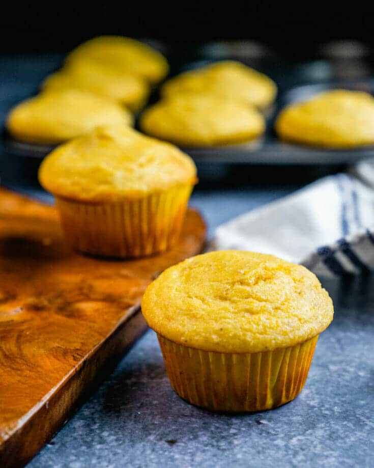 Cornbread muffins are fantastic for serving with stuffed peppers! You'll want to make these in advance, since you'll need the oven for making the peppers. These muffins are moist and fluffy, with the ideal sweet savory flavor.