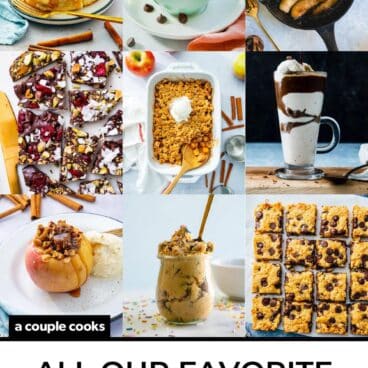 One way to survive gray, frigid days of winter? Snuggle up with cozy winter desserts! These recipes are meant to be an occasional treat, not an everyday affair. But anticipating a warming treat is what wintery meals are all about! Try a cozy-spiced crumble, a gooey chocolate cookie cake, or a skillet full of warm bananas swimming in rum sauce.