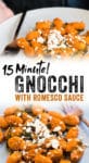 This 5-minute romesco gnocchi sauce recipe is bursting with flavor. Serve it up with packaged gnocchi for a fast and easy dinner recipe in just 15 minutes!