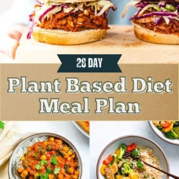 This plant based diet meal plan is right for you if you’re looking to eat more plants! The recipes in this meal plan are easy vegan recipes. As noted above, feel free to work in vegetarian or seafood recipes as well based on how you’d like to define plant based. For a vegetarian meal plan, head to 28 Day Vegetarian Meal Plan. If you also eat fish, go to our Healthy Meal Plan, Mediterranean Diet Meal Plan or Pescatarian Meal Plan.