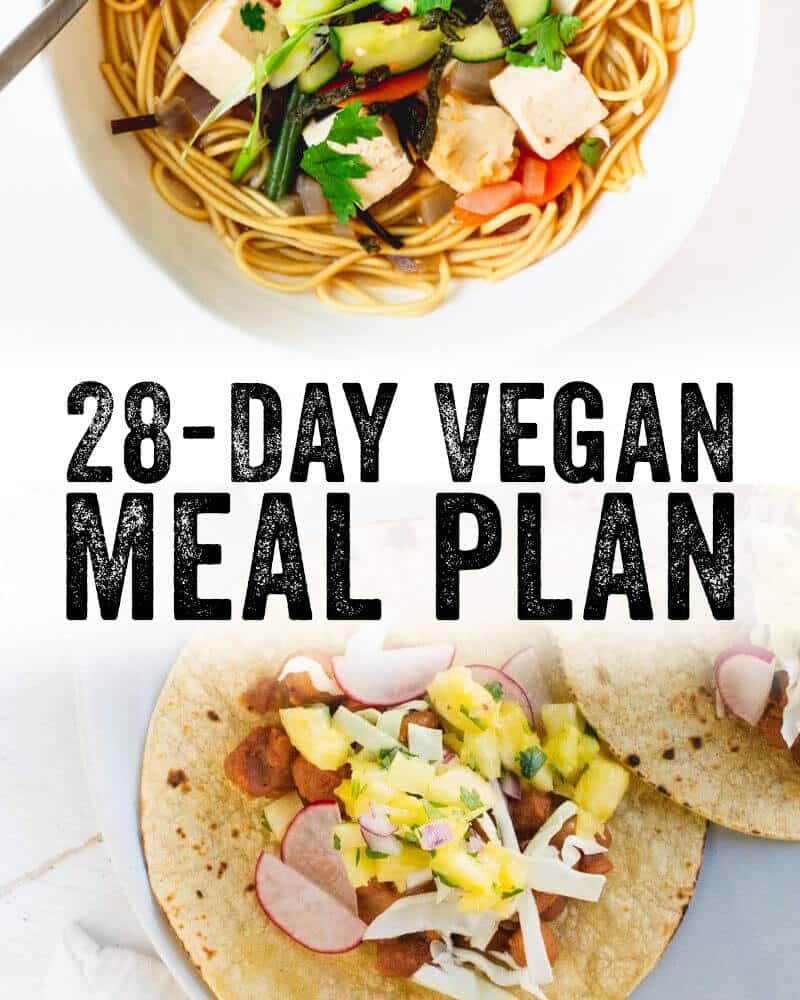 Looking for a vegan weekly meal plan? Here’s a 28 day vegan meal plan with planning ideas and a meal planning calendar with food to cook.