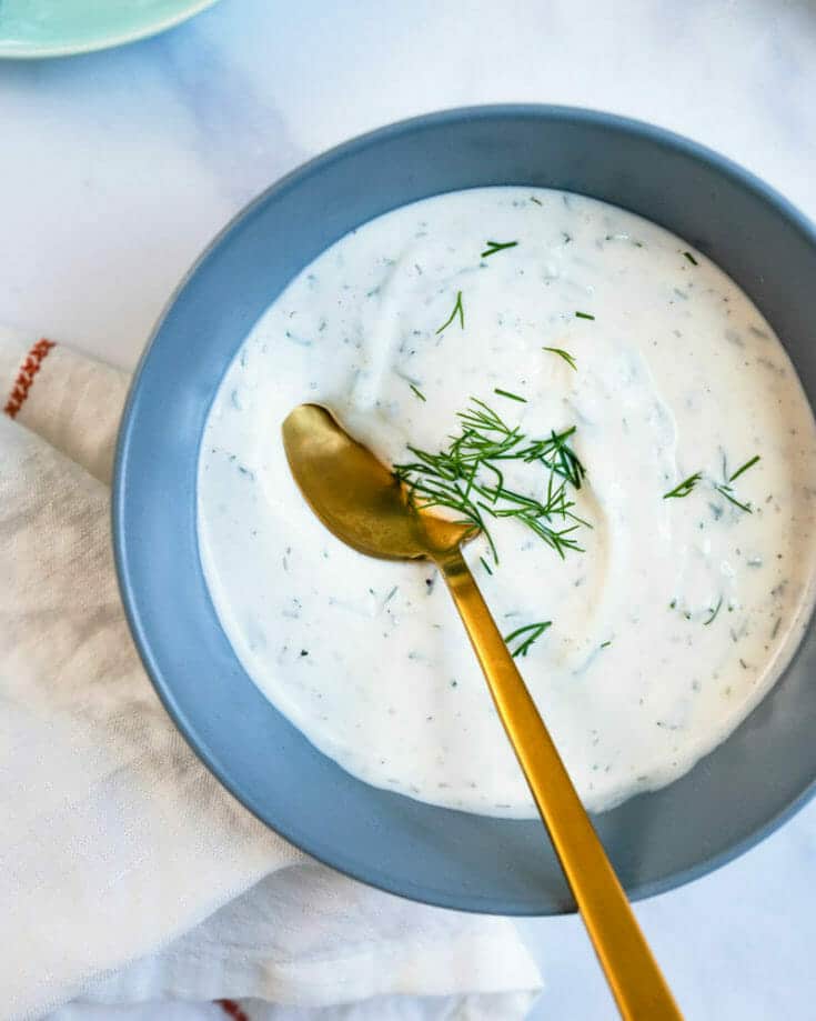 Another tasty falafel sauce? Enter this Easy Dill Sauce! This one is all purpose and can be used for everything from salmon to grilled veggies to falafel sandwiches. The best part: it takes only 5 minutes and a handful of ingredients. The Mediterranean flavors of Greek yogurt, fresh dill and lemon combine into a beautiful sauce that’s simple and totally versatile.