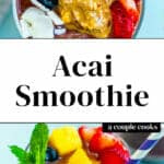This acai smoothie has all the fun of an acai bowl, in portable form! It’s got the best tropical flavor and a rainbow of healthy toppings.