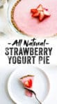 This recipe came from a challenge—a challenge from my mother in law! She makes yogurt pie: you know the one? Graham cracker crust, Cool-whip, and artificially-flavored strawberry yogurt. Could you make a healthier yogurt pie? she asked. Like with real organic yogurt and real strawberries?