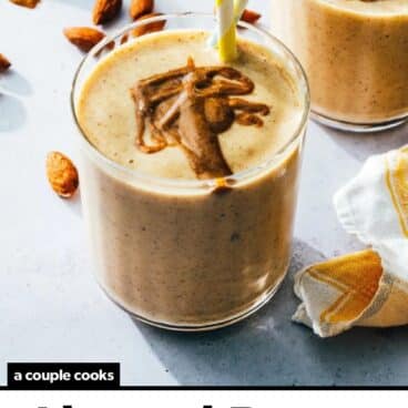 This almond butter smoothie is creamy with a hint of chai spices! It’s the ideal frosty puree for a snack or breakfast.