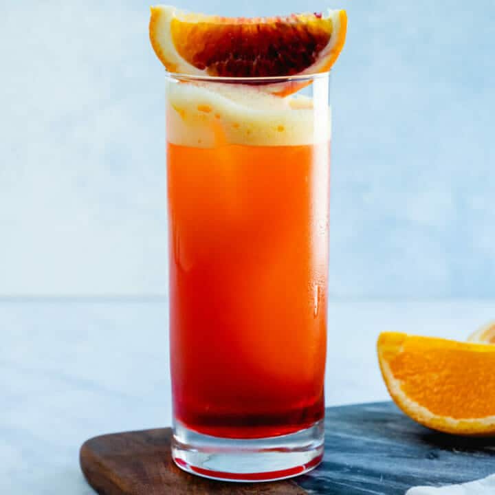 Here’s a unique Aperol cocktail: the Aperol Garibaldi! This Italian cocktail has 2 ingredients, which makes it supremely easy to mix up. The original Garibaldi uses Campari: but why not substitute it with Aperol? It comes out balanced and refreshing, with bitter, sweet and tangy notes all intermingling in the perfect sip.