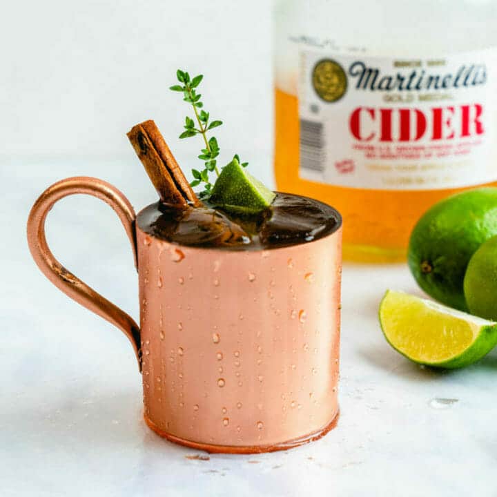 This apple cider mule is festive and easy fall cocktail! This seasonal spin on the Moscow mule features cider and ginger beer.