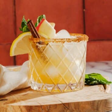 I can’t take the credit for this apple cider mocktail: my husband Alex actually created this recipe! He had the idea for the secret ingredient: apple cider vinegar, just like in this pomegranate mocktail. It might sound odd, but the acidity mimics alcohol and really makes it taste like a cocktail!